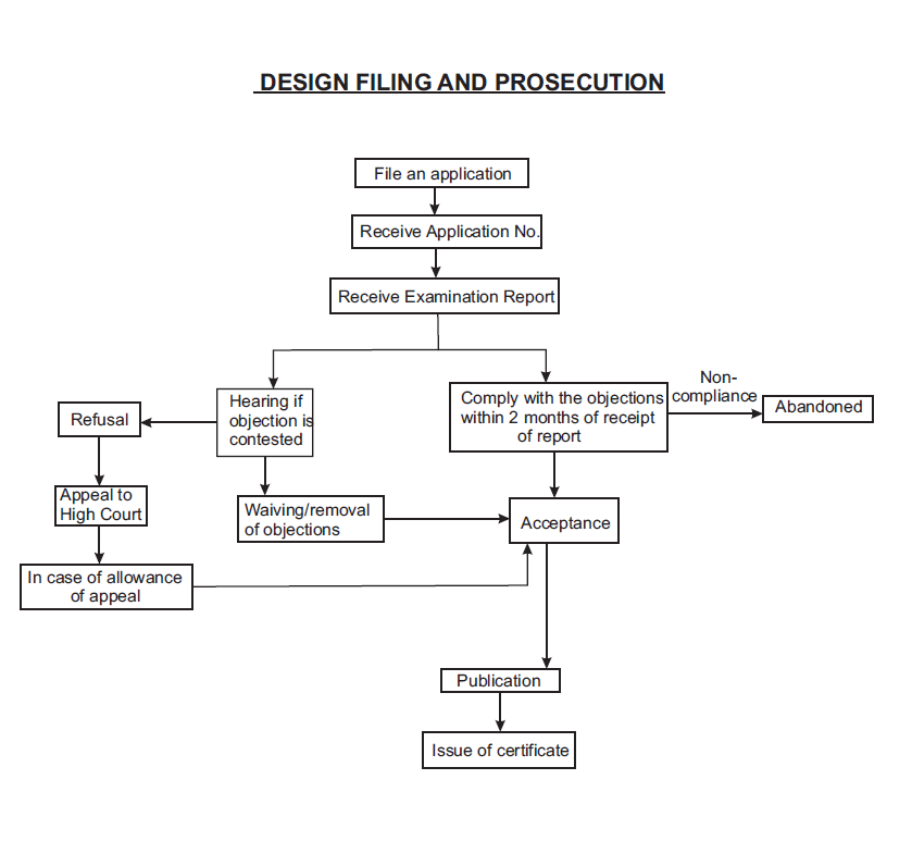 A design application can be filed only for the features of shape, configuration, pattern, ornament or composition of lines or colors applied to a two-dimensional or three-dimensional article. The design registration, additionally to any copyright protection that may exist on the design, provides a monopoly to the owner to stop others from using or selling the product without his authorization.